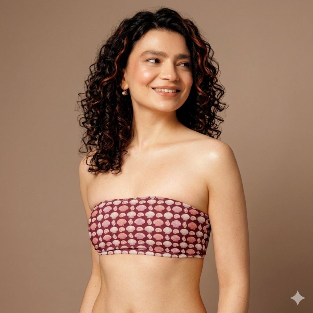 This strapless silhouette offers a clean, hardware-free design that is perfect for achieving a seamless, tan-line-free look. Crafted from high-quality stretch fabric, it provides a secure and comfortable fit that stays in place whether you’re lounging poolside or catching waves. Pair this versatile piece with matching bottoms for a coordinated, vintage-inspired beach aesthetic.
